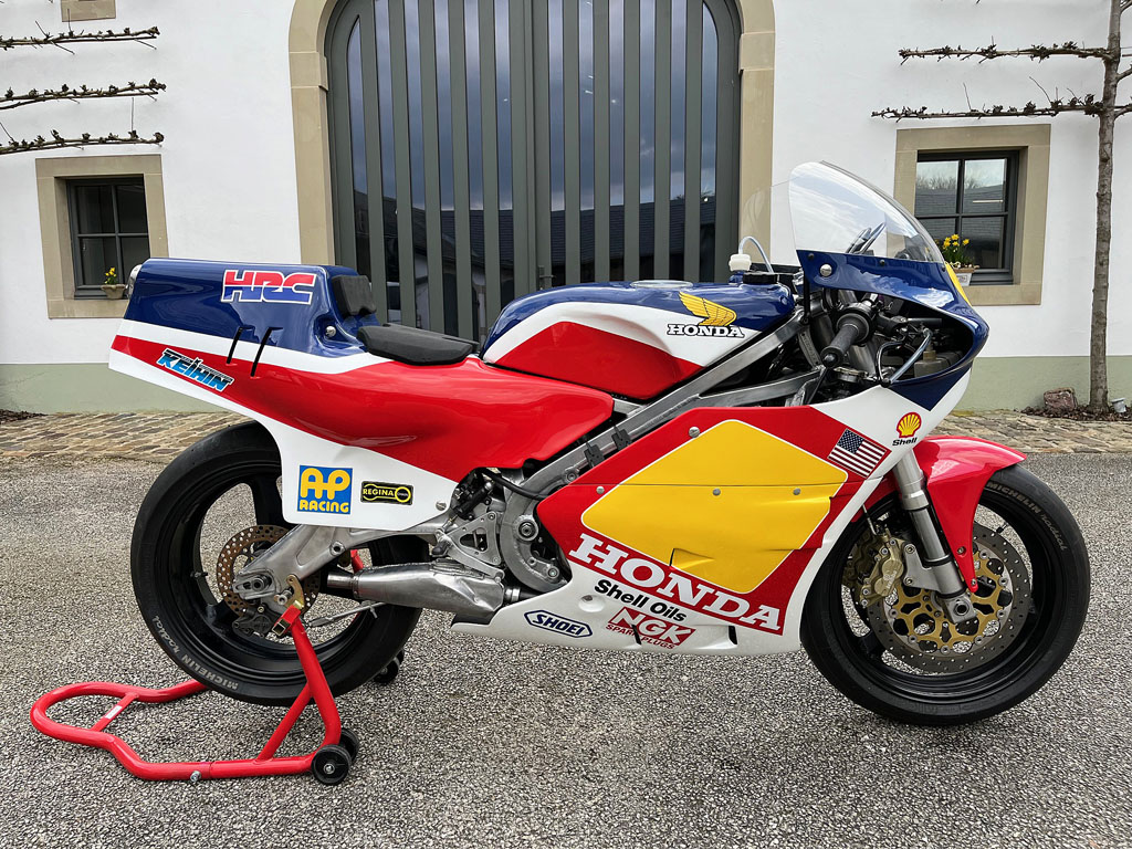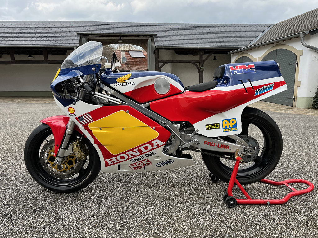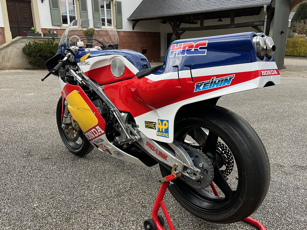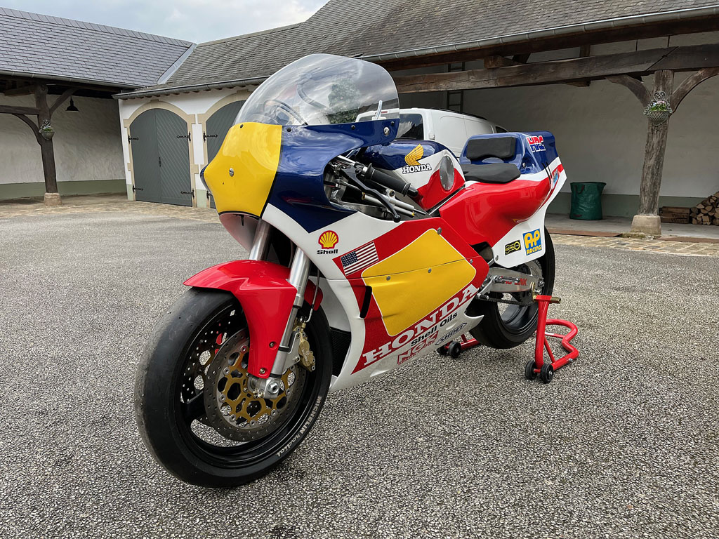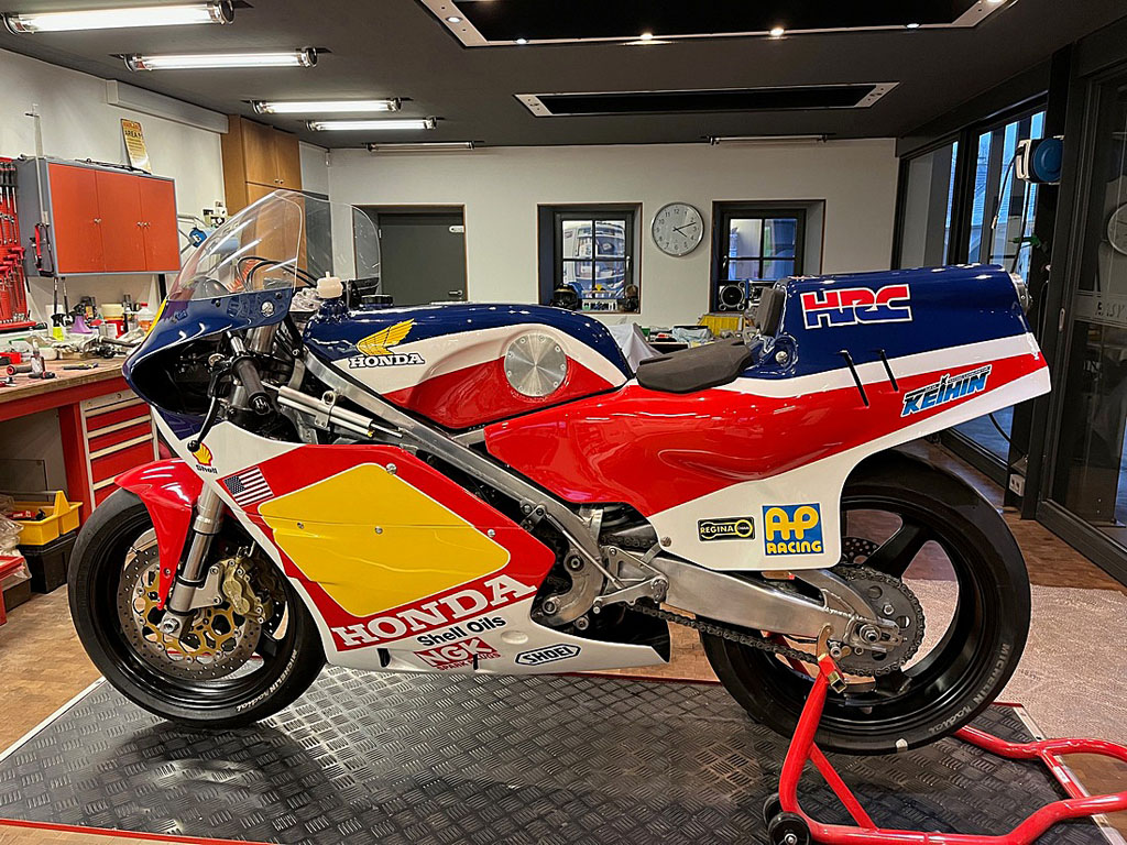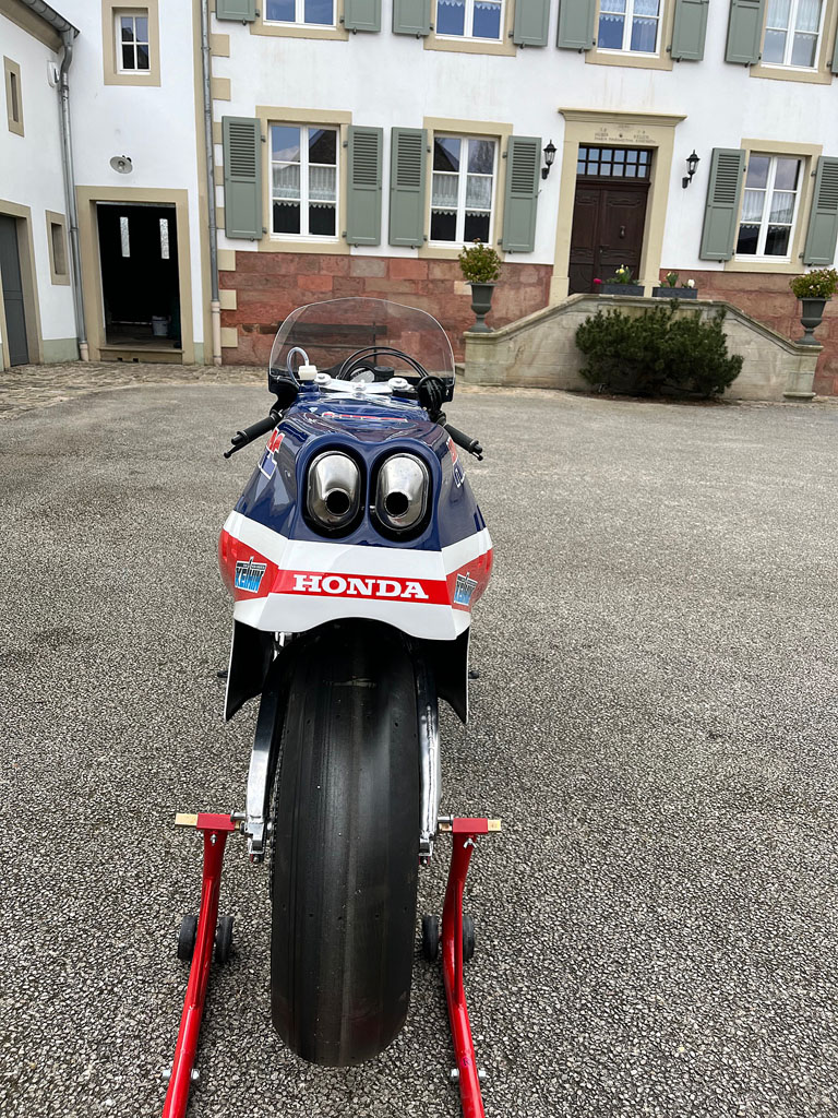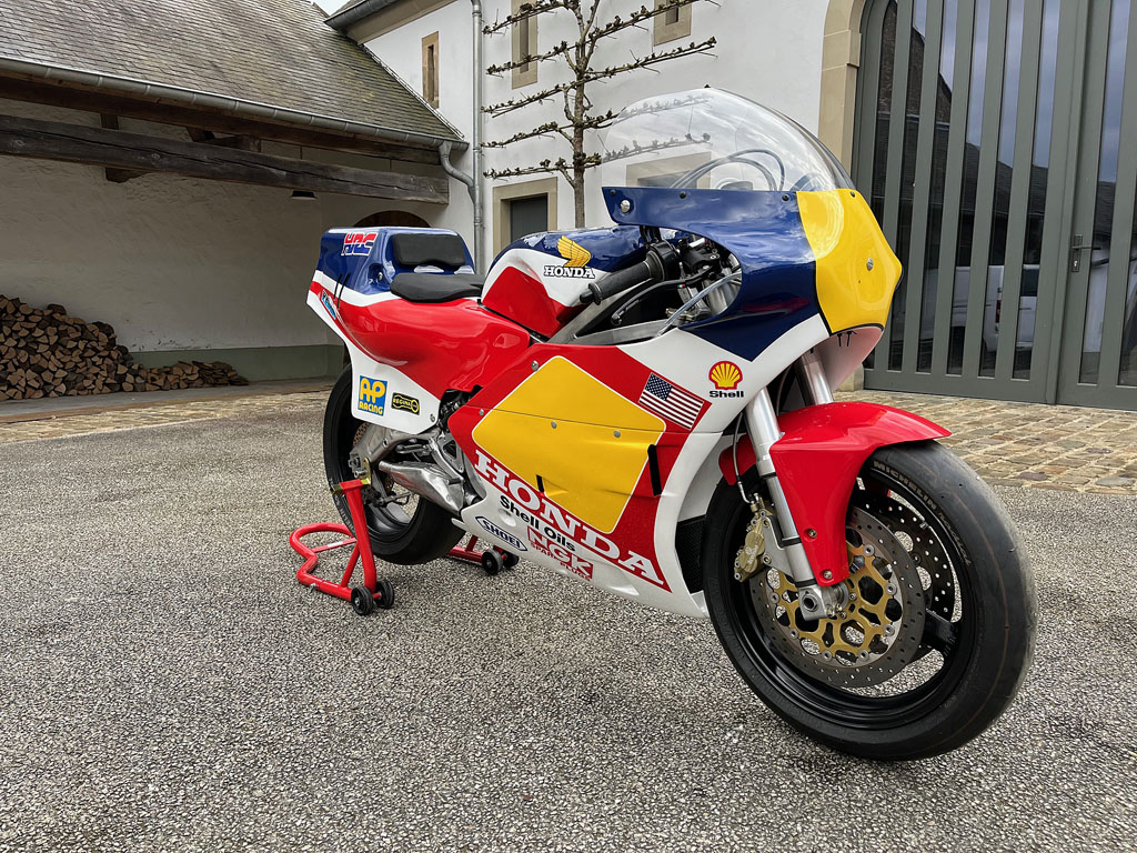 Recovered in Daytona in 1985 by a Dutch enthusiast, it has been fitted with a Nico Bakker frame and Showa forks.