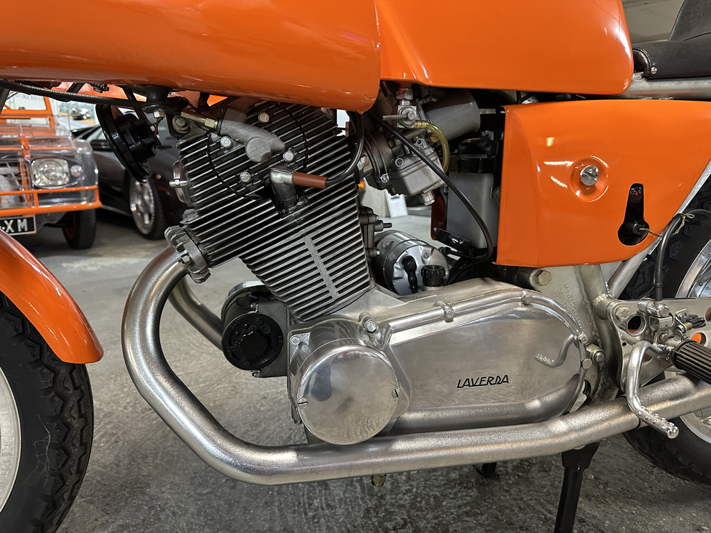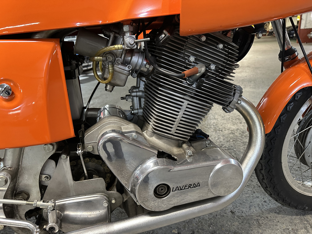 La Laverda SFC 750 présentée ici est un modèle de la deuxième série produite en 1971 à 78 exemplaires (série 8000).